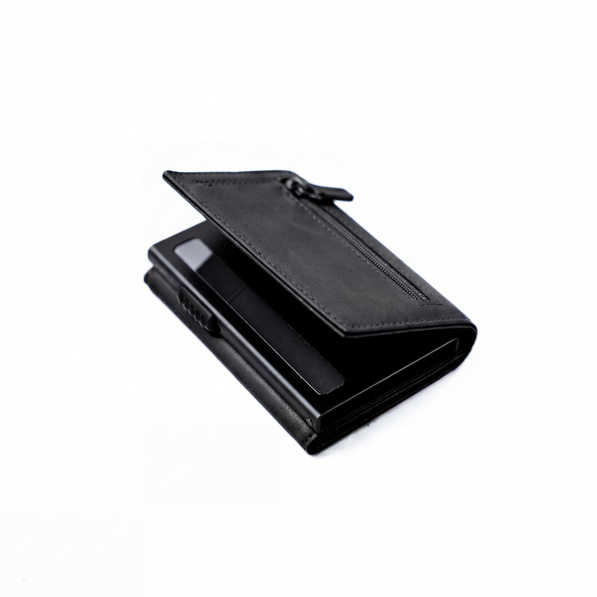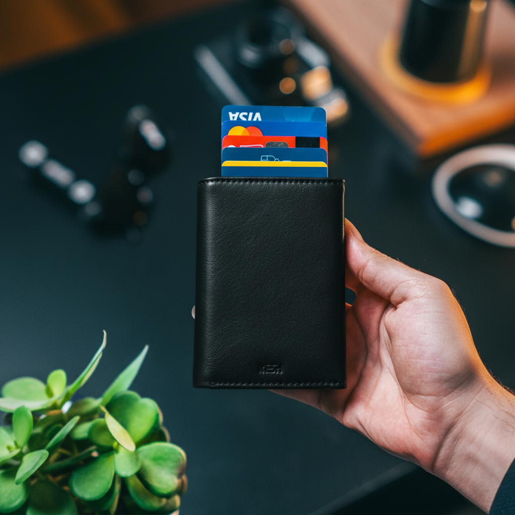 Diseñada para quienes valoran el detalle, esta billetera combina un look moderno con una estructura pensada para simplificar tu día a día. Su sistema de despliegue escalonado permite acceder a tus tarjetas con un solo movimiento, mientras el cuero negro y el aluminio la convierten en una pieza elegante y funcional. Ideal para vos, o como un regalo especial.