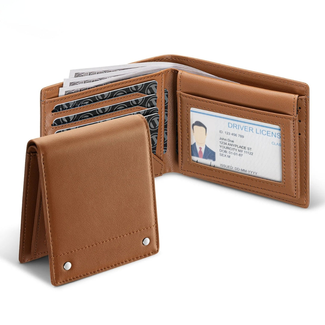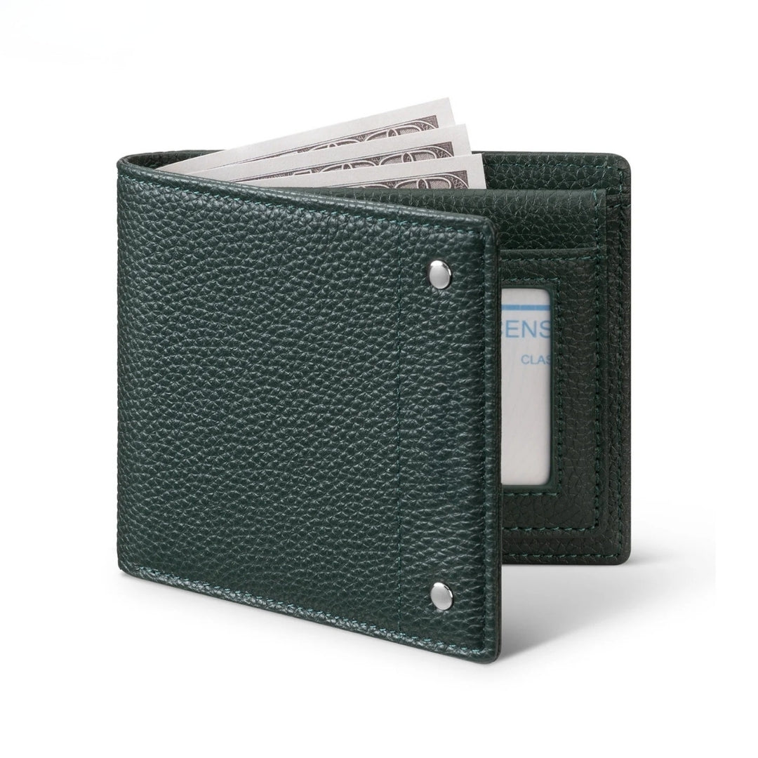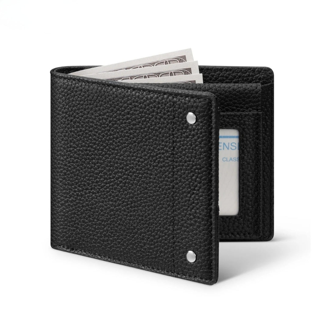 Con su formato bi-fold, esta billetera ofrece un estilo tradicional y sofisticado, ideal para quienes prefieren lo clásico sin renunciar a la seguridad.